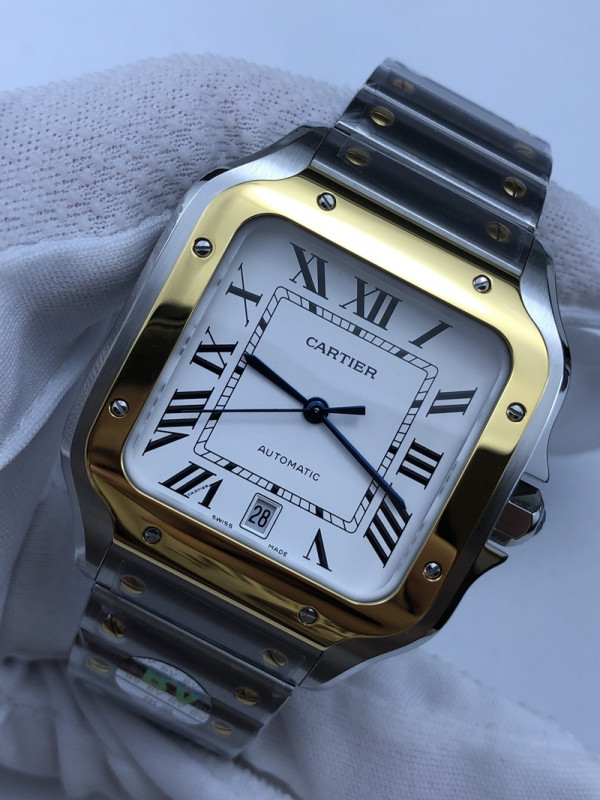 (준비완료/특급배송)NO.795/BV공장 까르띠에 산토스 40MM 2018 스틸 옐로우골드콤비 화이트다이얼 브슬